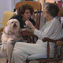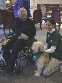 Maggie and handler Lori Haeuser visit with a resident